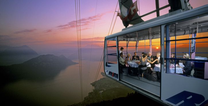 Improbable mais vrai : le téléphérique qui part de Weggis près de Lucerne, et va jusqu’au mont Rigi, à 1800 mètres, accueille dîners et cocktails dans ses cabines. Une expérience à coup sûr vertigineuse, avec une vue fantastique sur les Alpes, que l’on peut faire de mai à septembre (de préférence quand les soirées sont longues).