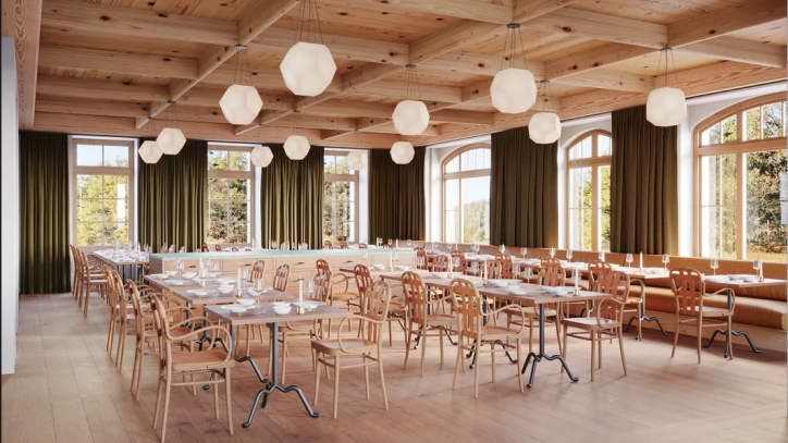 L’établissement est dépourvu de salles de réunion, mais cela ne l’empêchera pas de recevoir les groupes d’entreprises. Il peut mettre à disposition ses différents restaurants, bars et salon, à la demande. En l’occurrence la brasserie Belvédère, qui ouvrira en janvier, et le restaurant gastronomique Waldrand. Tous deux peuvent accueillir une centaine de personnes en configuration théâtre, de même que la terrasse. S’y ajoutent deux bars adjacents (une dizaine de personnes chacun), et jusqu’au superbe salon de la réception, encadré de grands piliers de bois sculpté (8 personnes pour une réunion, 60 pour une réception).