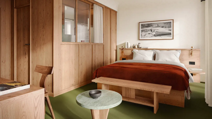 Seul hôtel 5 étoiles de Wengen, le Grand Hôtel Belvédère se trouve à quelques minutes à pied de la gare (mais il dispose de navettes électriques), dans un grand jardin arboré. Il s’agit de la première adresse en Suisse du groupe français Beaumier, qui, en reprenant l’établissement, lui a offert une cure de jeunesse sans faire table rase de son héritage, entre style alpin classique et Art Nouveau. Le décor des 90 chambres marie la sobriété aux matériaux nobles, et atteint un subtil équilibre entre chaleur et modernité. On y est quelque part entre le chalet de montagne et le grand hôtel classique. Allant de 20 à 37 m2, les chambres ont une décoration identique, et sont réparties dans deux édifices de 36 et 54 unités.