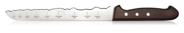 Un hôtelier en Suisse Orientale a eu une idée créatrice en regardant le panorama du massif du Säntis un matin de septembre. Cela le faisait penser à la lame d’un couteau à pain et il a décidé d’en faire fabriquer un afin que ses hôtes puissent désormais couper le pain de leur petit-déjeuner symboliquement avec ces montagnes.