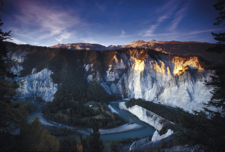 Un autre phénomène naturel non moins spectaculaire a été creusé par l’eau, il s’agit de la Ruinalta, gorges du Rhin, aussi appelé le « Grand Canyon Suisse ». On peut l’observer par le haut depuis le village de Flims ou alors la traverser à pied, à vélo, en train ou même lors d’une activité rafting.