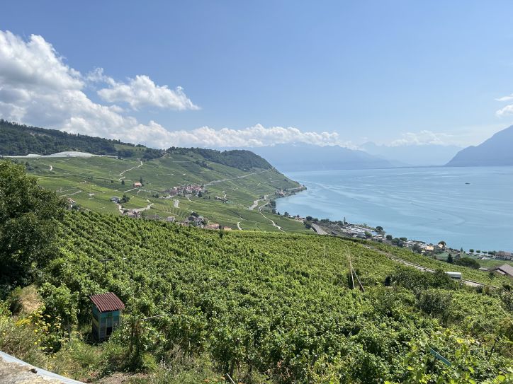 Vue depuis le vignoble Lavaux sur le Lac Léman