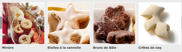 En Suisse la période de Noël ne rime pas avec foie gras, mais plutôt avec pâtisserie: Pain d’épice pour la Saint-Nicolas et surtout petits gâteaux de Noël pendant toute la période des fêtes de fin d’année (les Alsaciens se reconnaîtront dans leur tradition des « Bredele »). Croissants Vanille, Etoiles à la Canelle, Sablés, Crêtes de Coq à l’Anis, Macarons aux noisettes, Milanais (Mailänderli), Miroirs ou Coquins (Spitzbuebe) à la confiture … la liste est longue. Il existe même des livres de recettes entièrement dédiés à la confection de ces différents délices !