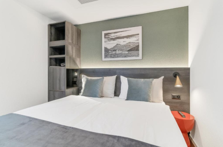 Derrière sa façade d’époque, l’établissement propose des chambres modernes. Elles sont au goût du jour depuis la dernière rénovation en date, réalisée en 2023 et suivie de la réouverture cette année. Les 96 chambres offrent un confort et un cadre 3 étoiles supérieur. Leur décoration fait dans la discrétion et la sobriété, avec un camaïeu de gris et de blanc.