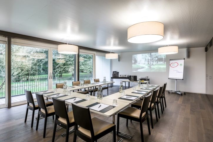 Pour le séminaire de septembre dernier, nous avons choisi une destination qui nous permettait de visiter Schaerer, Fabricant de machines à café à usage professionnel, une de nos filiales, située à Zuchwil, dans le nord-ouest de la Suisse. Nous ne l’avions jamais fait auparavant. Nous avons donc cherché un lieu proche de l’entreprise pour accueillir le Groupe, mais, en cette période de rentrée, beaucoup d’hôtels étaient complets. Je suis entrée en contact avec le Suisse Convention Bureau basé à Paris, à qui j’avais déjà fait appel, et l’équipe m’a adressé plusieurs adresses. Très rapidement et très facilement, nous avons opté pour l’hôtel Schloss Hünigen à Konolfingen, au sud de Berne, qui correspondait en tous points à notre cahier des charges.